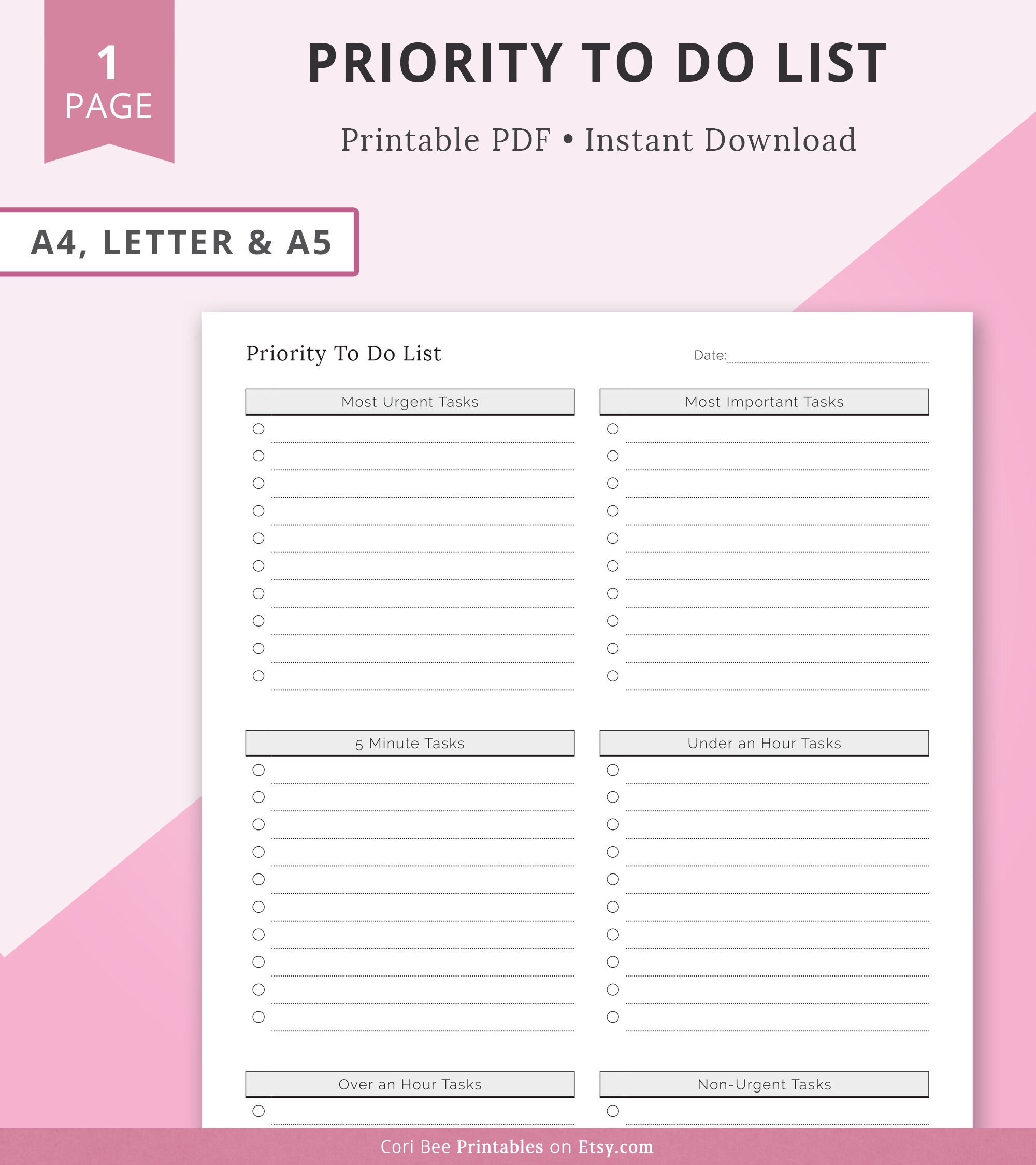 Priority To Do List Priority Task List Priority Matrix Priority Checklist Printable Priority Planner To Do List Organizer Eisenhower