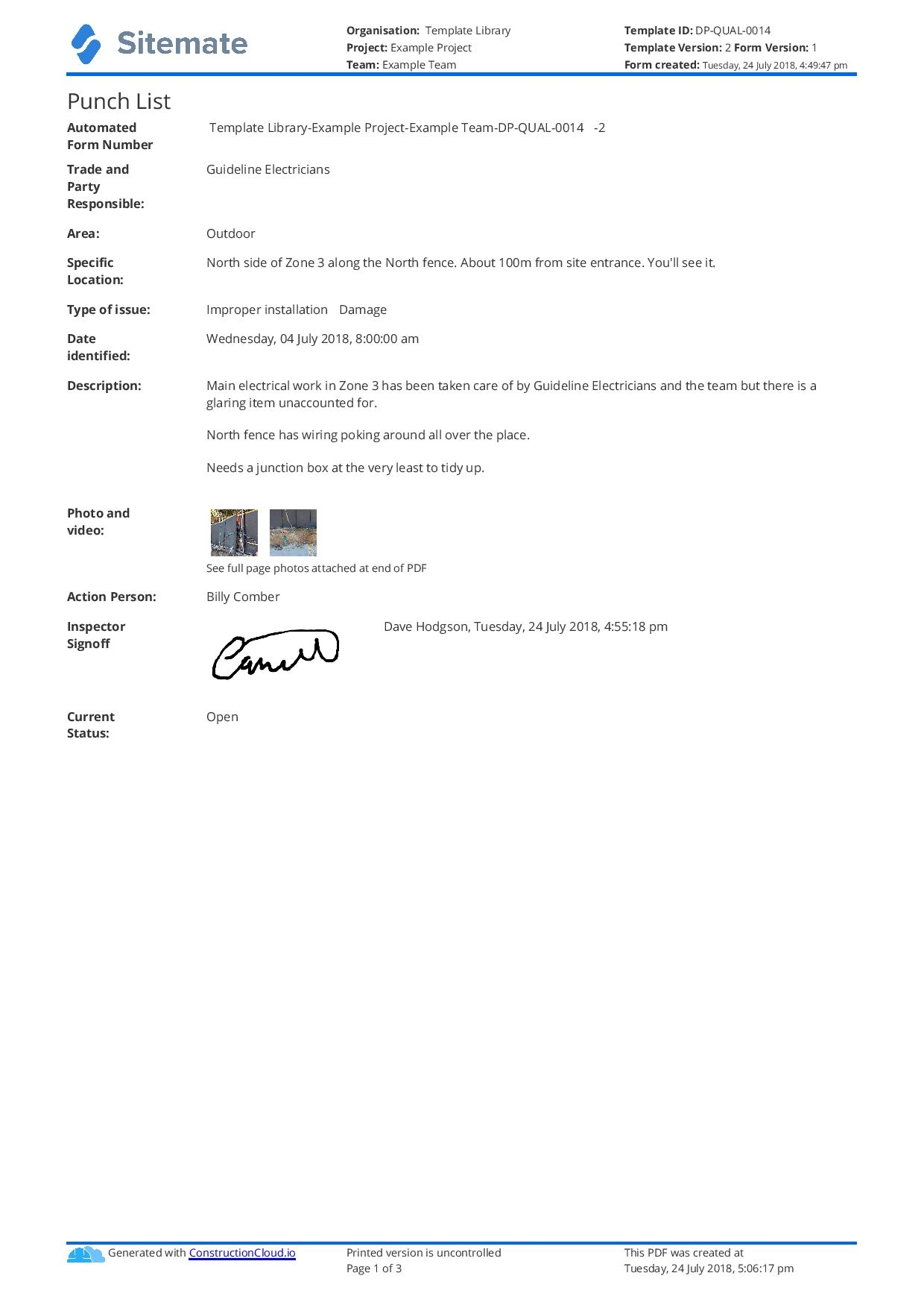 Sample Punch List