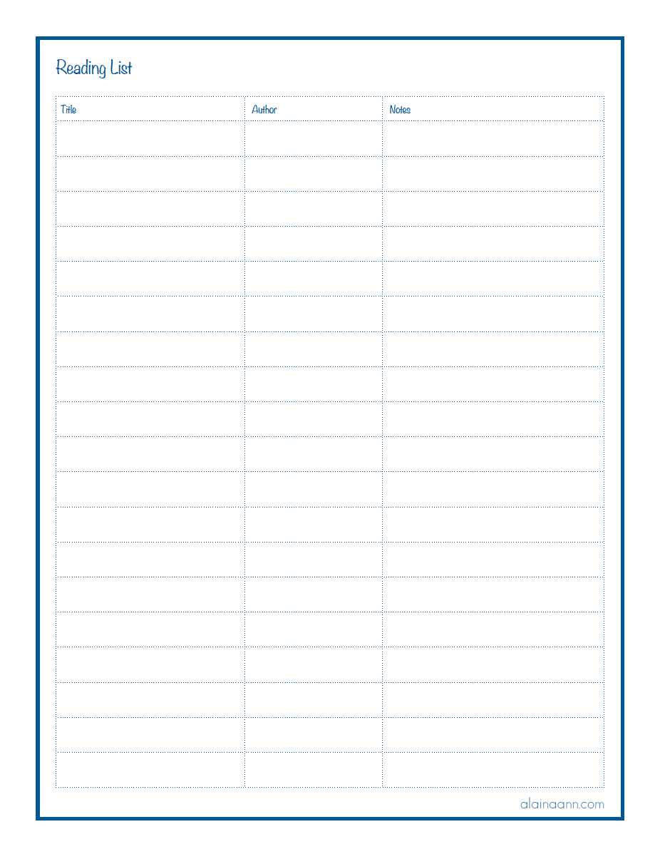 Reading List Printable Alaina Ann