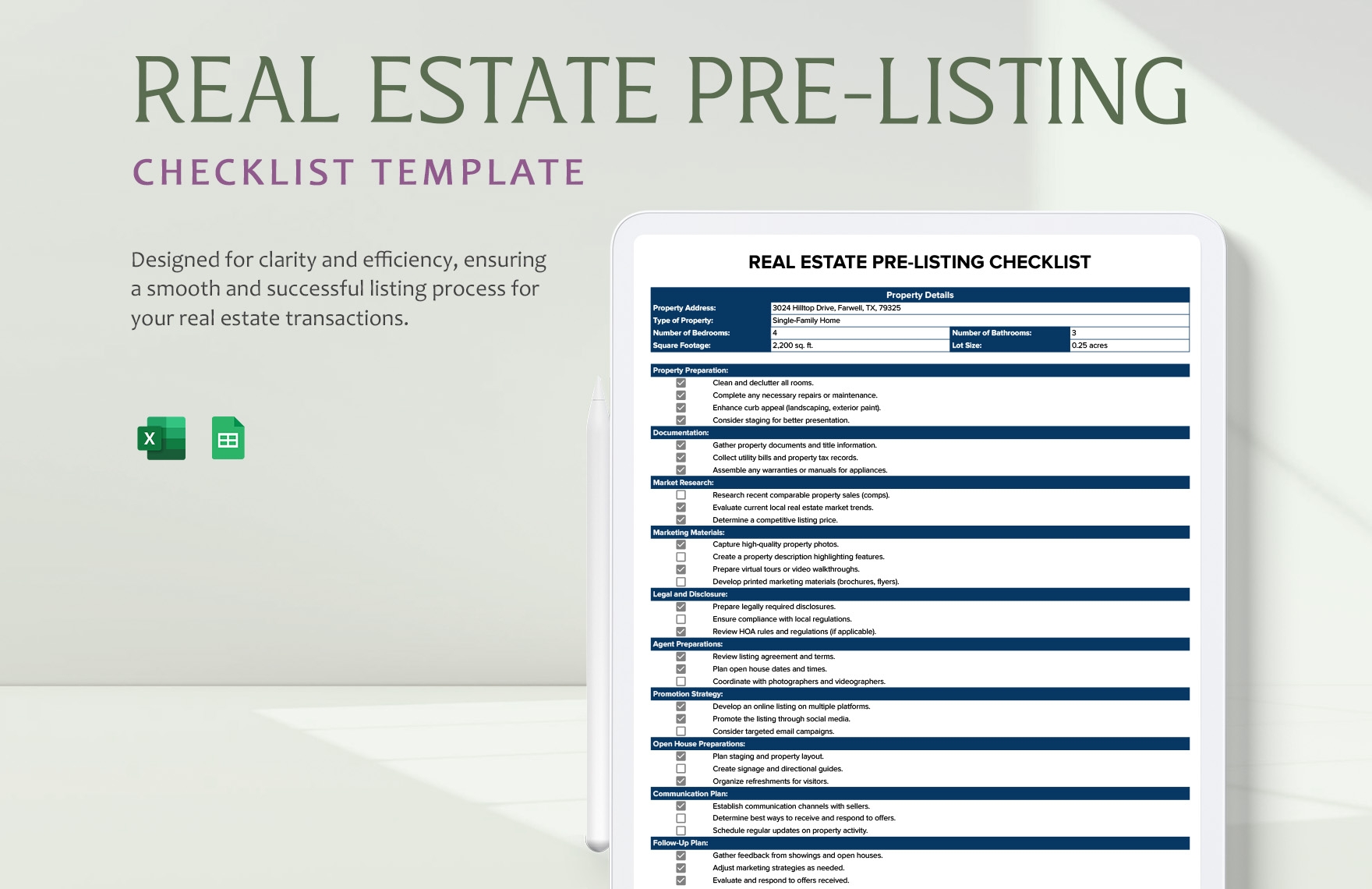 Real Estate Pre Listing Checklist Template In Excel Google Sheets Download Template