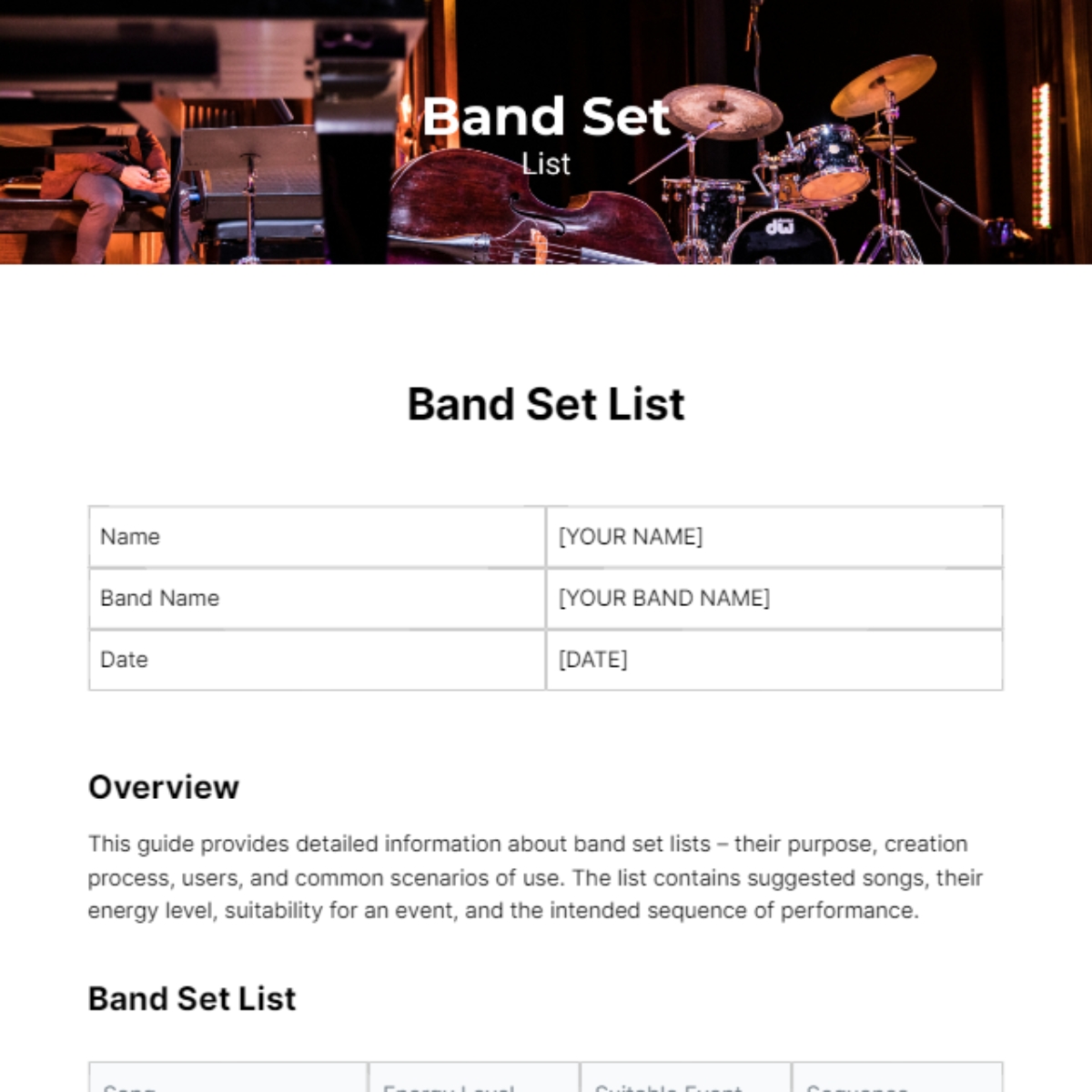 Band Set List Template