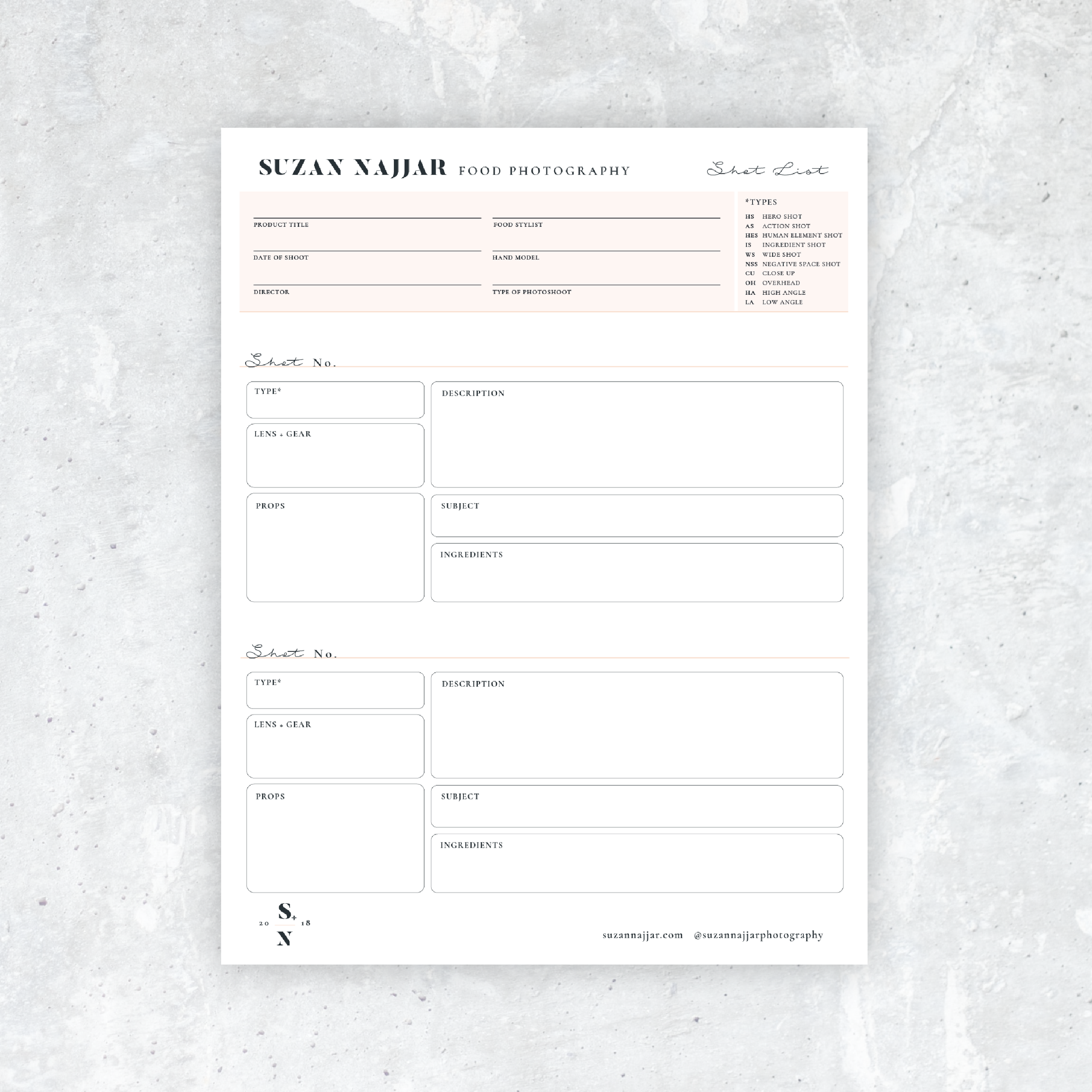 Shot List Photography Template