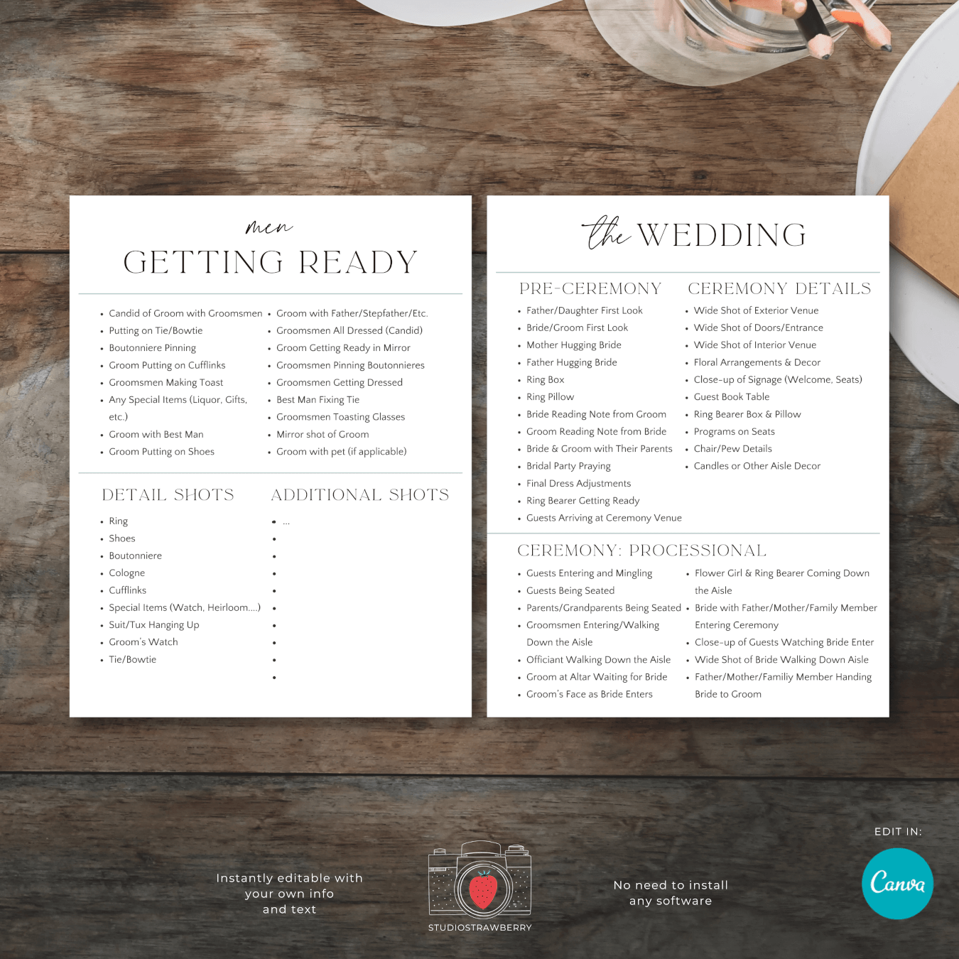Wedding Photography Shot List Template Strawberry Kit