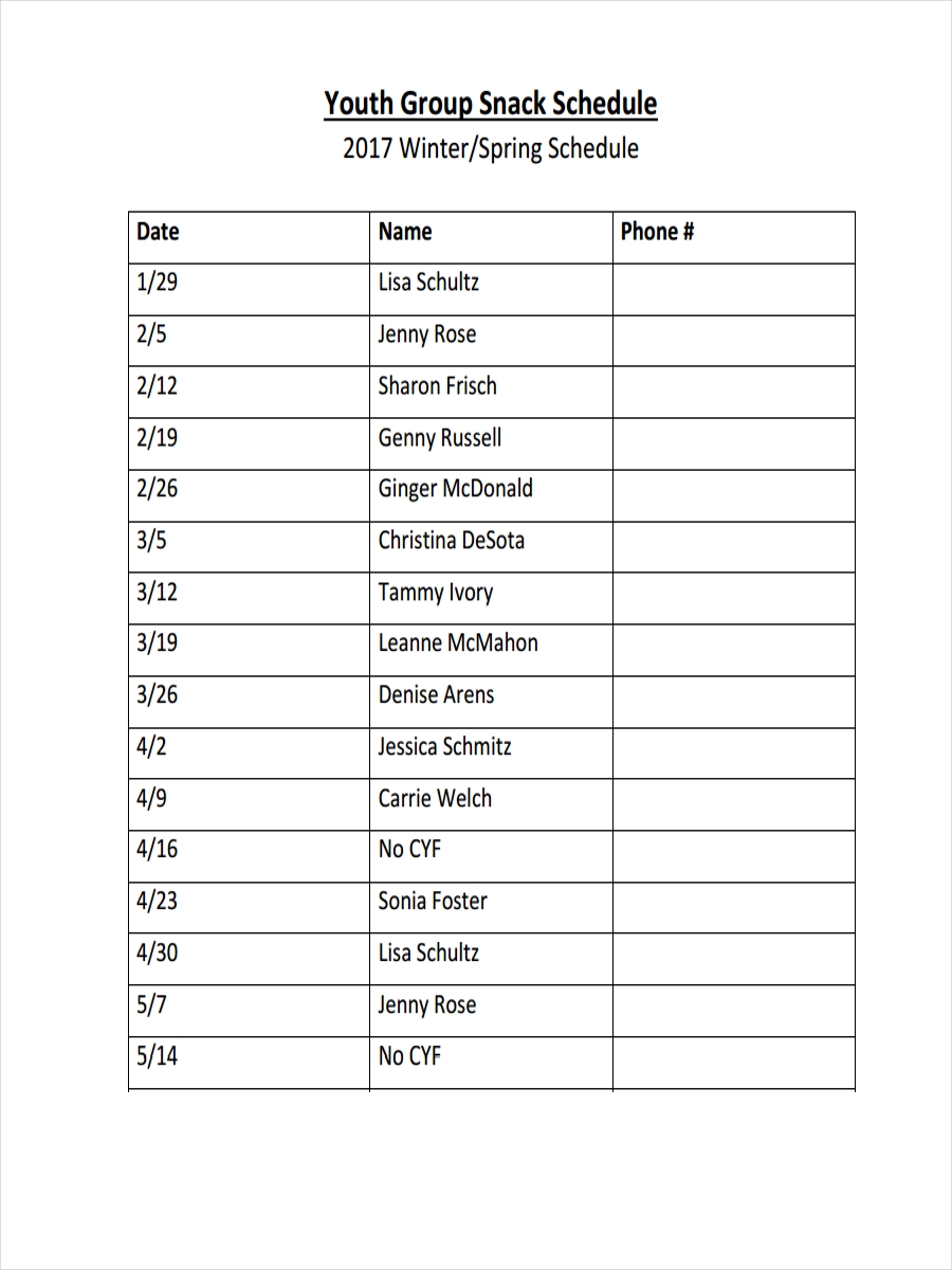 Snack Sign Up Sheet Sport Schedule Printable Form Pdf U0026 Png