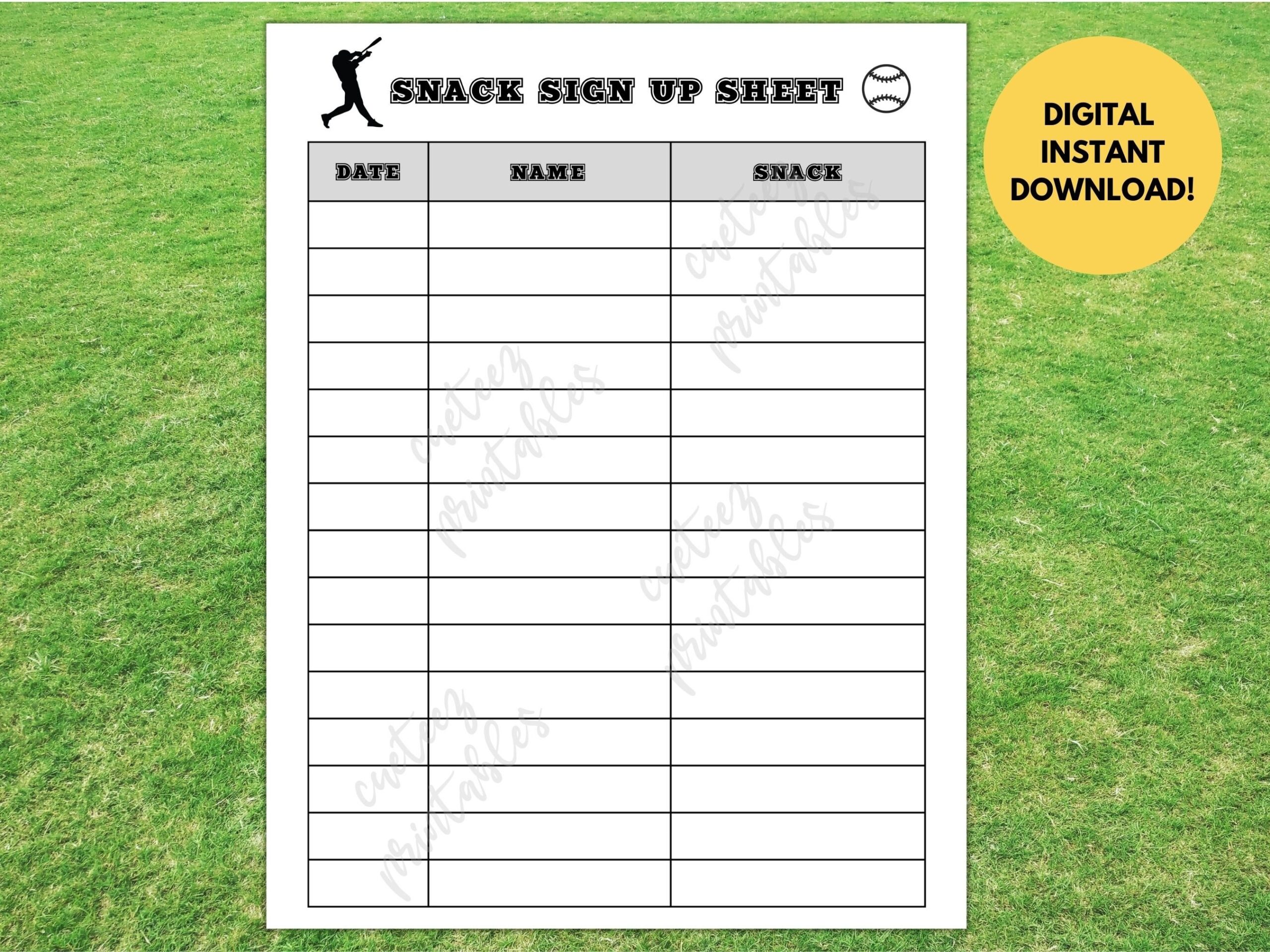 EDITABLE Baseball Snack Sign Up Sheet Game Day Snacks Sign Up Printable Baseball Volunteer Form Snack Sign Up Sheet Etsy