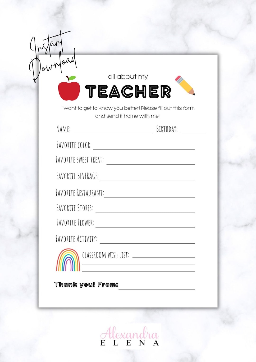 Free Teacher Favorite Things Form Sarah Chesworth