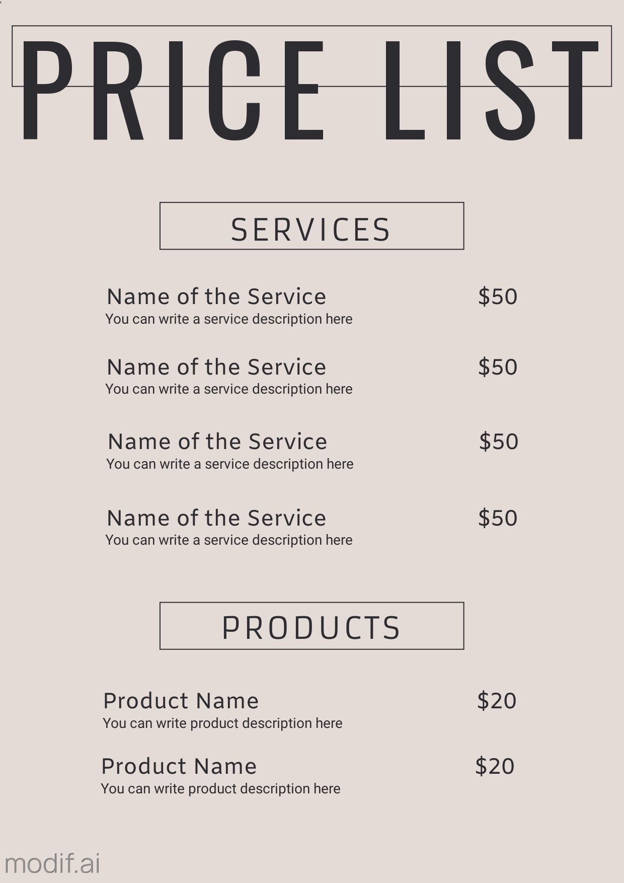 Free And Customizable Price List Templates