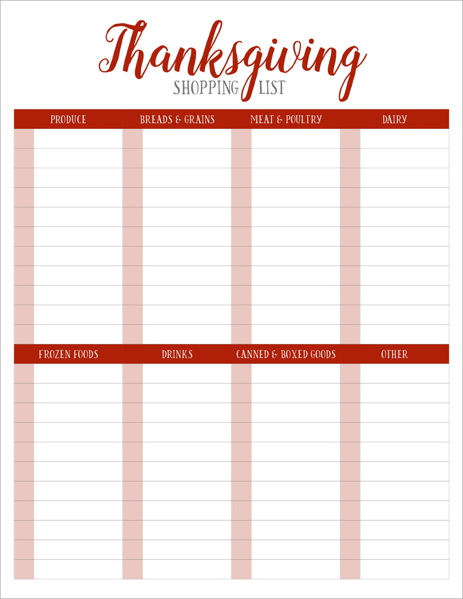 Printable Grocery List For Thanksgiving Printable Party Favors