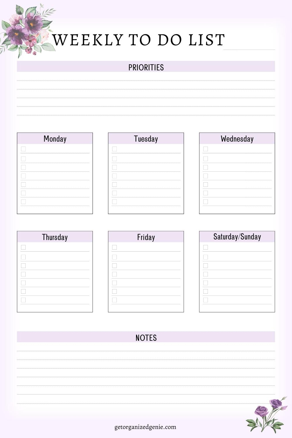 To Do List Weekly Template