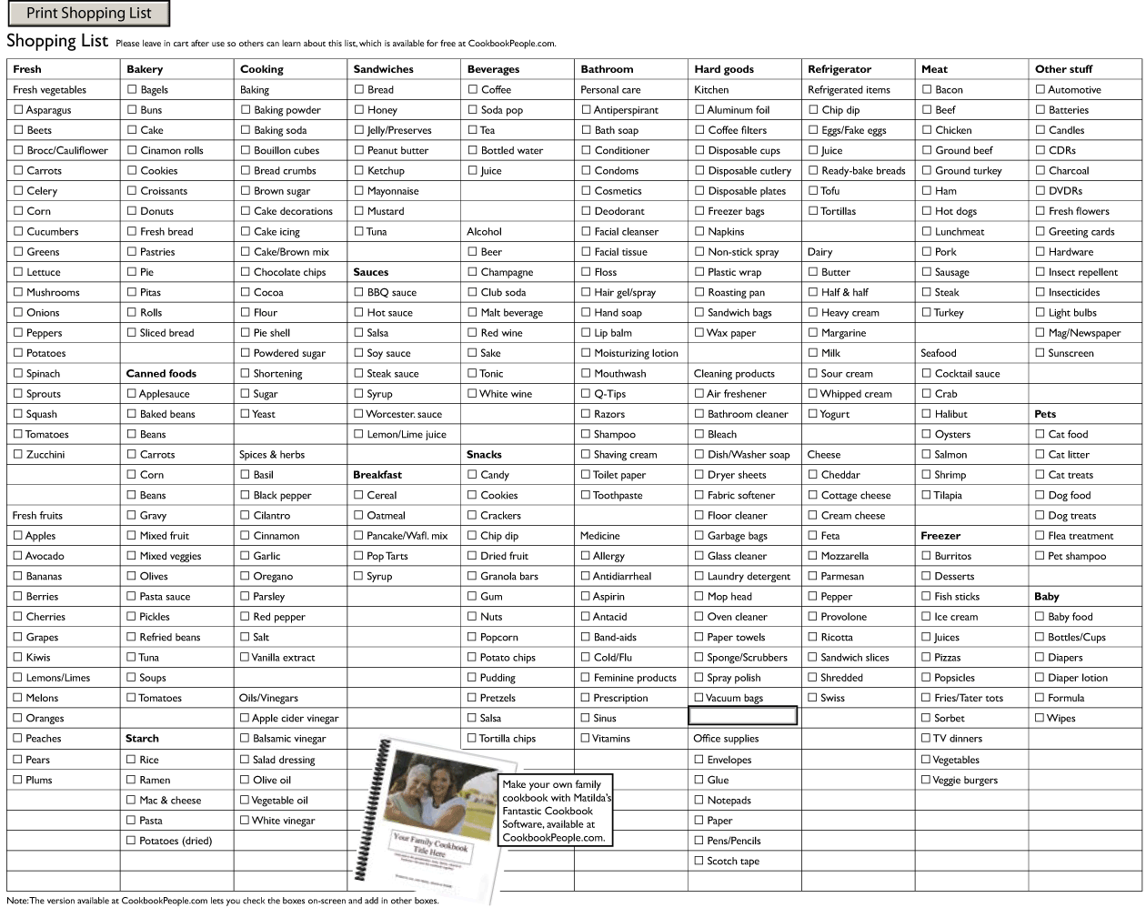 This handy tool will help you stay organized and ensure you never miss a crucial ingredient or pantry staple again. With categories for produce, dairy, meats, and more, shopping will be a breeze.