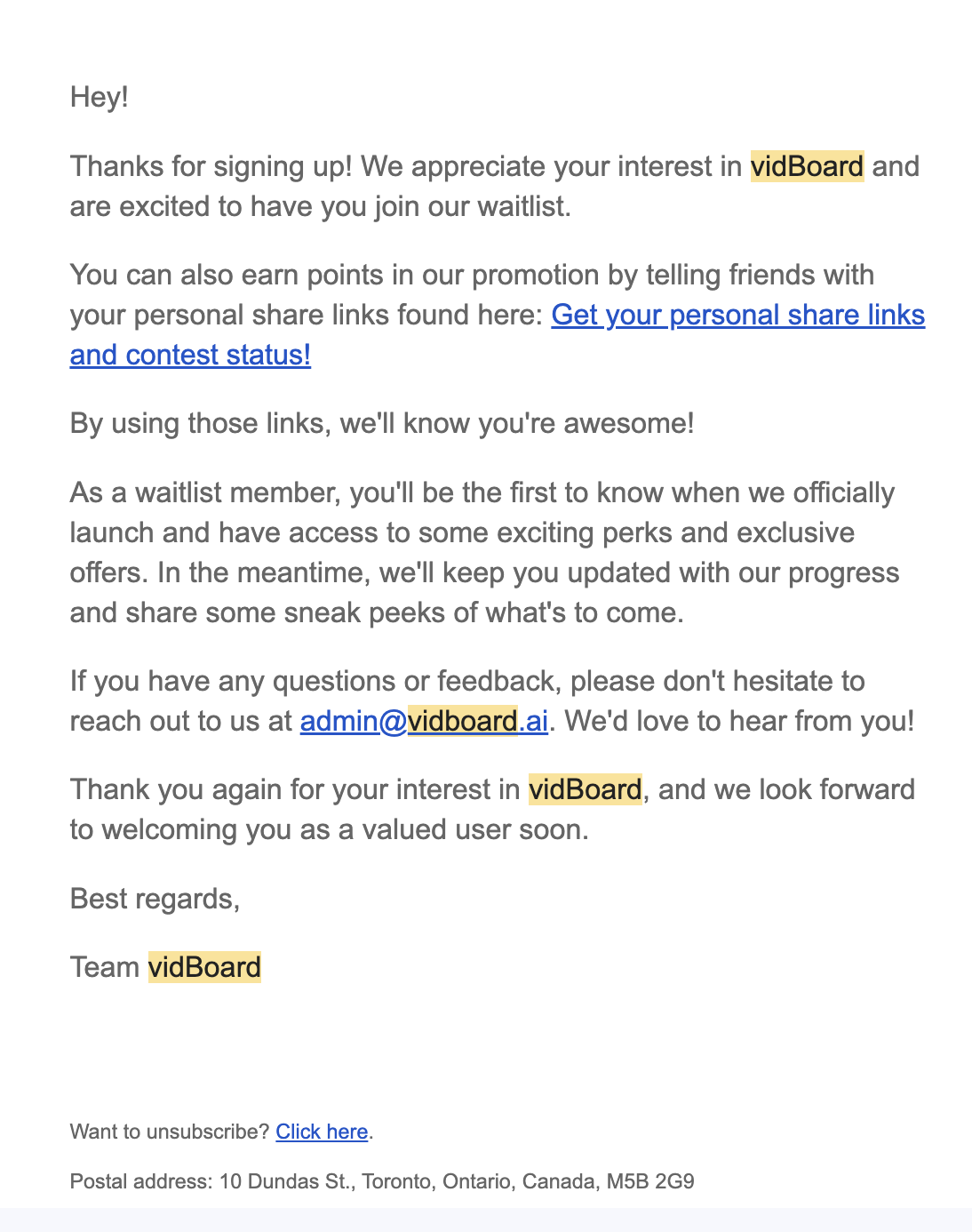 Waiting List Email Template
