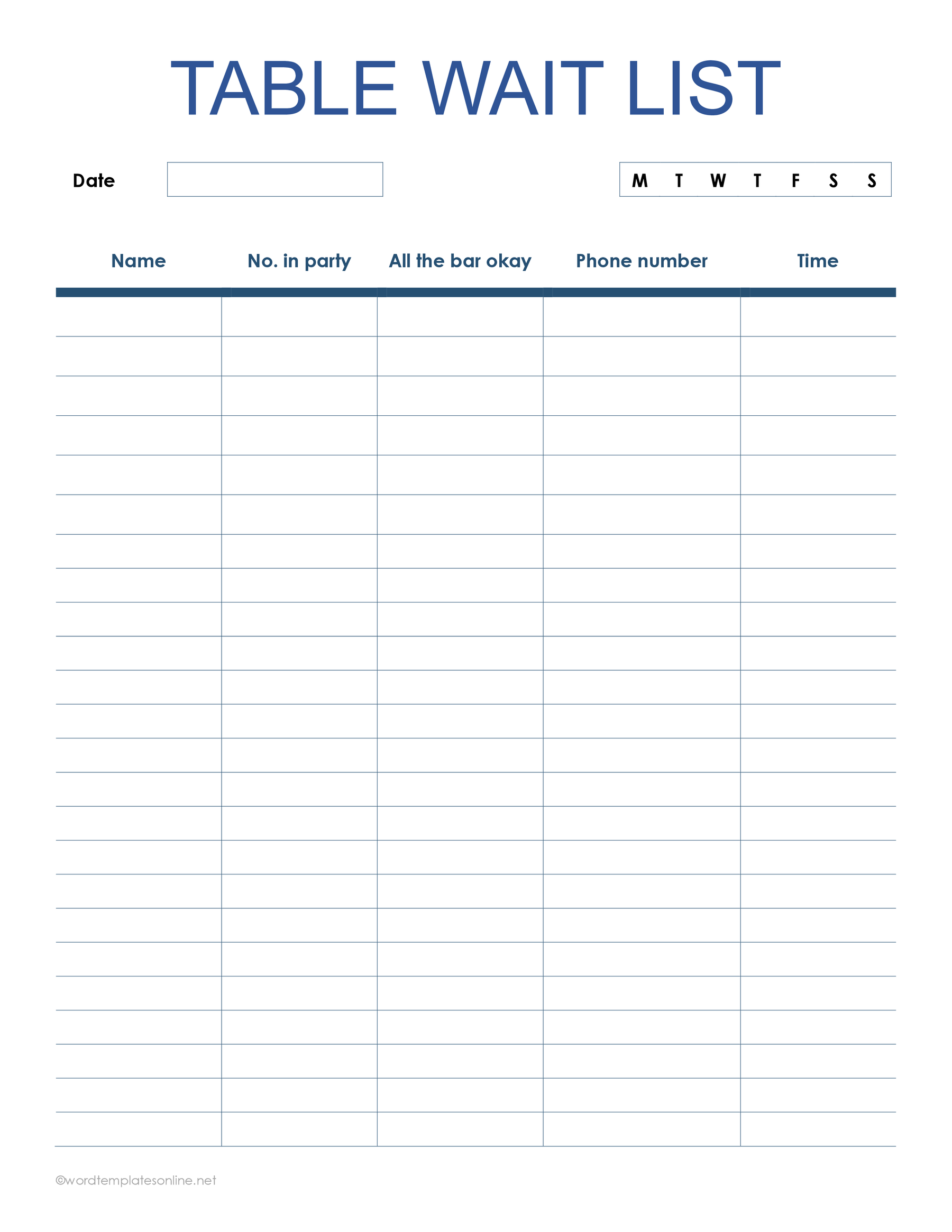 Free Restaurant Waitlist Templates Excel Word
