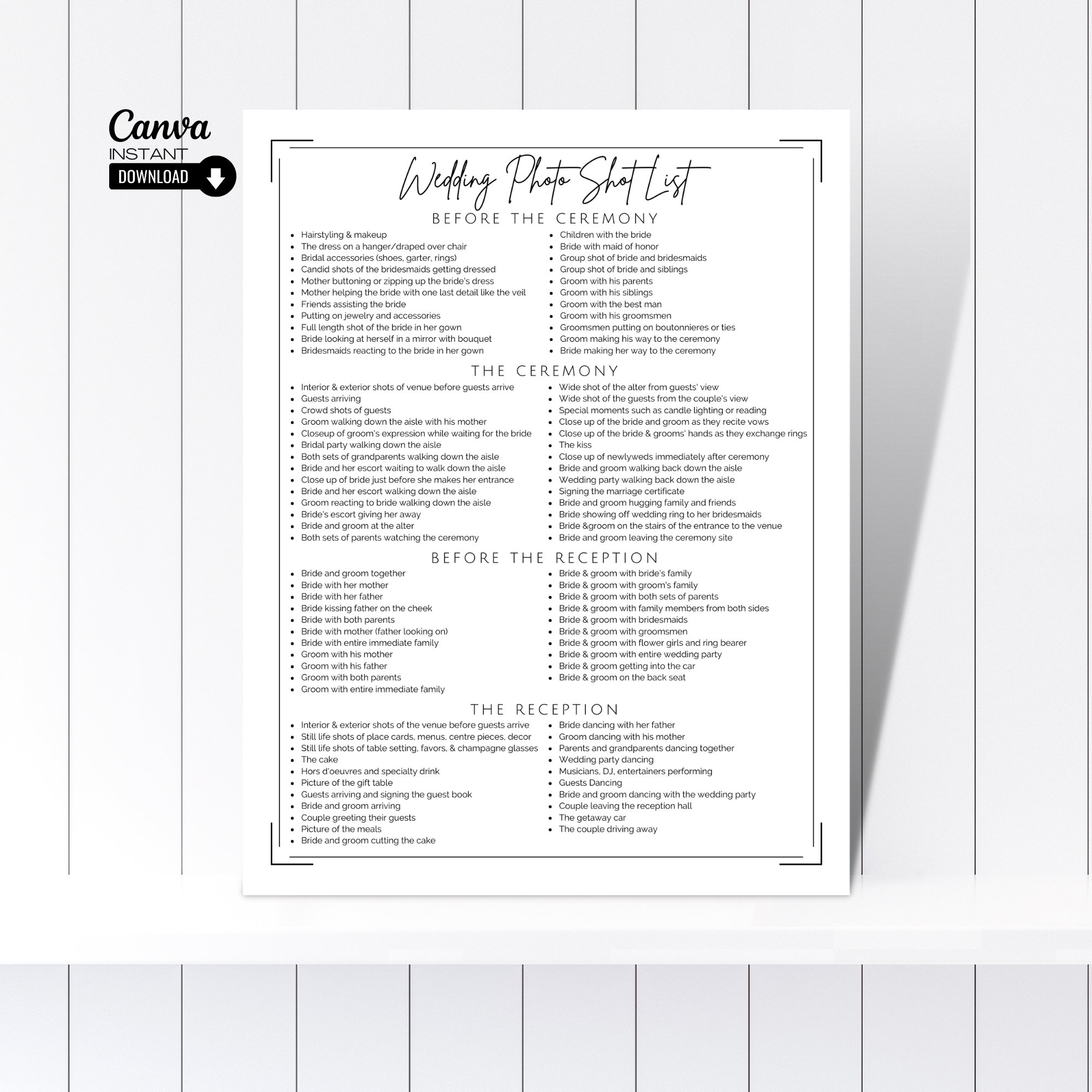 Editable Wedding Photography Checklist Photographer Shot List